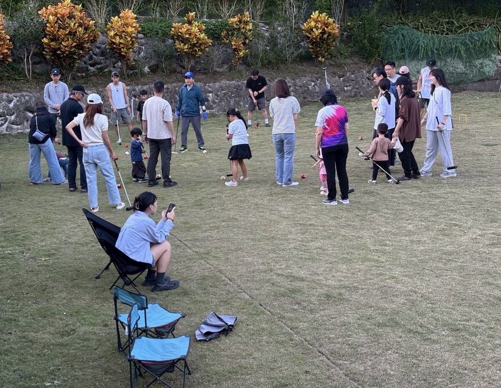 天氣許可時,營區會舉辦 槌球趣味體驗活動,符合「讓小孩放風、大人放空」的經營理念。