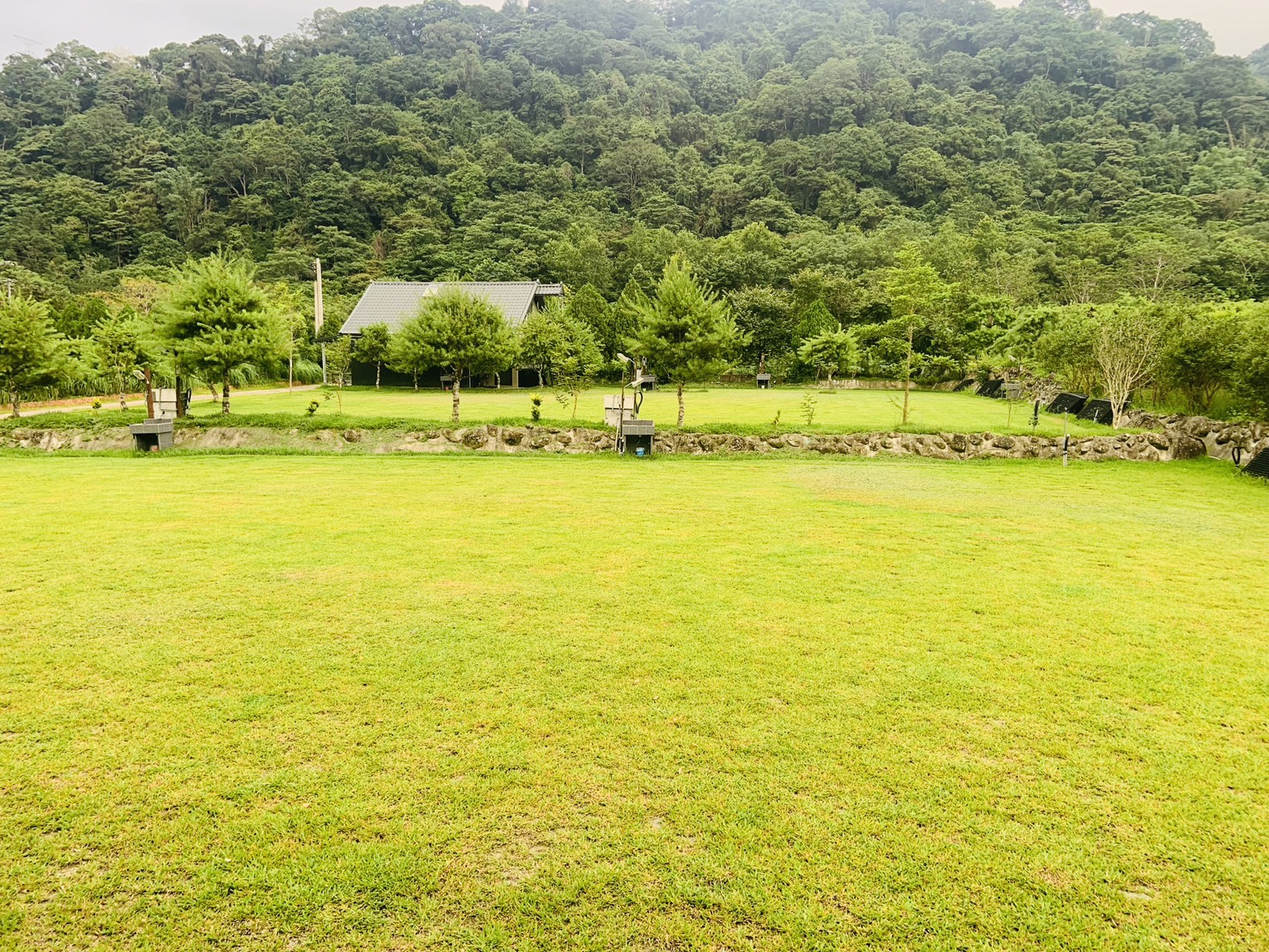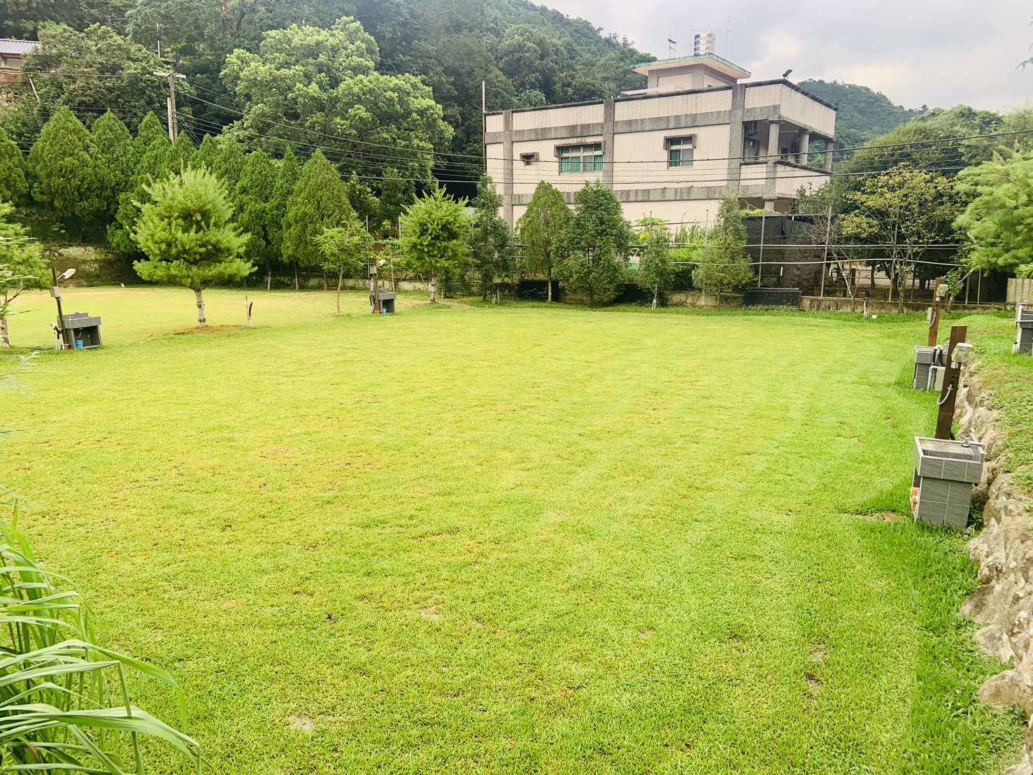 營區內開闢一處 天然草皮 27 公尺 × 22 公尺 作為槌球及兒童跑跳、球類、飛盤等運動場地,更可作為社團、團體團康活動的安全場地。